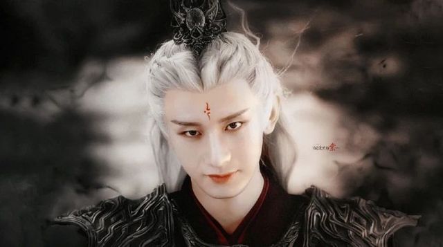 一头冷冽银白的卷曲银发,三分上扬的唇角,一双邪魅狂狷的凤眼,他有着与应渊一模一样的面容,但却比其多了邪魅少了冷酷。