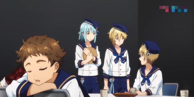 休息室门被打开,紫之创和仁兔成鸣从外面走进来,其中紫之创手里还端着给明星昴流泡的茶。