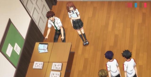 守泽千秋(凑到深海奏汰面前)说起来,有件事情想拜托奏汰(把另一个策划书的一半递给深海奏汰)……