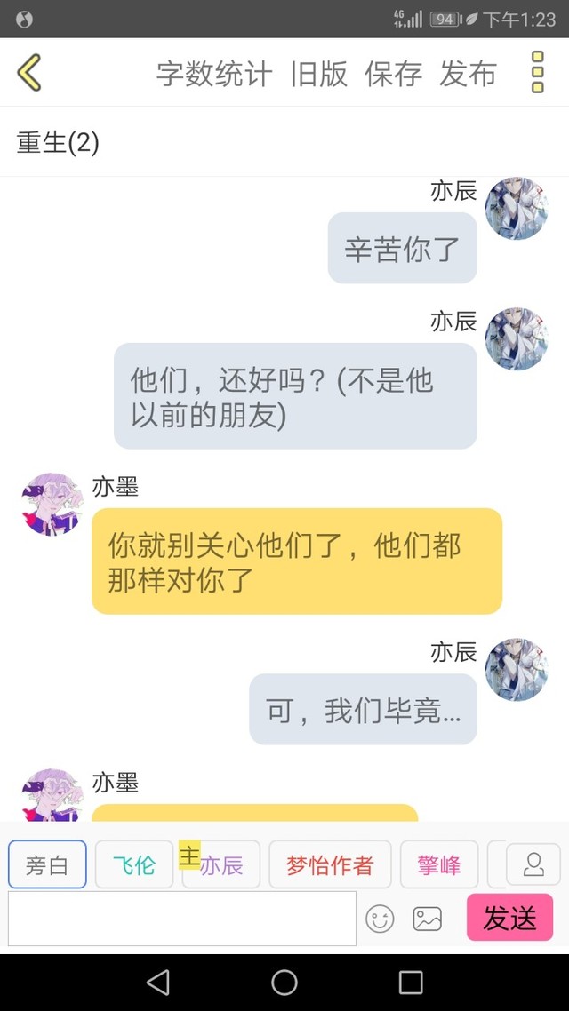 作者这里的“他们”不是他以飞伦身份交的朋友,而是他以亦辰身份交的朋友