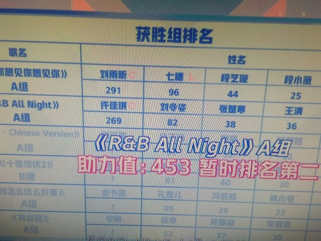 蔡徐坤《R&B》A组目前排名第二