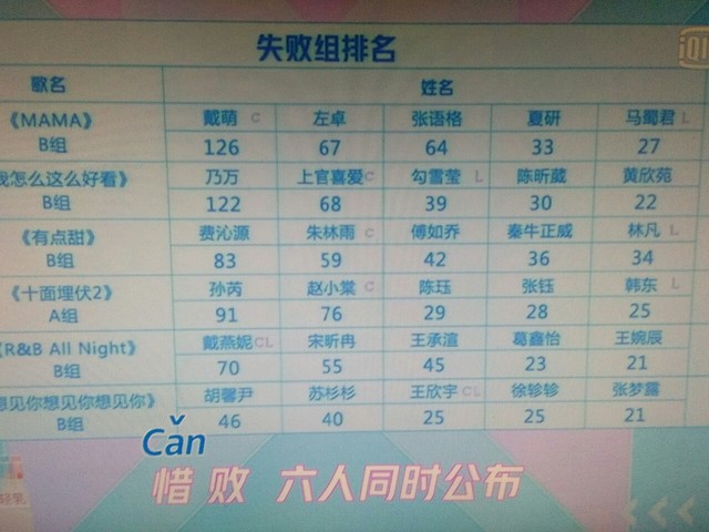 蔡徐坤接下来我们来看,惨败小组的成绩