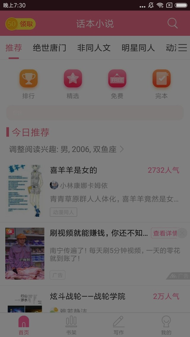 喜太狼(作者)我昨天上了推荐