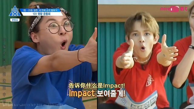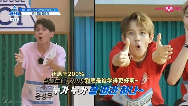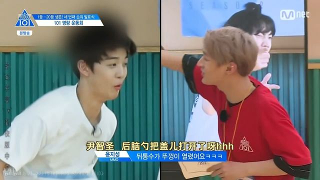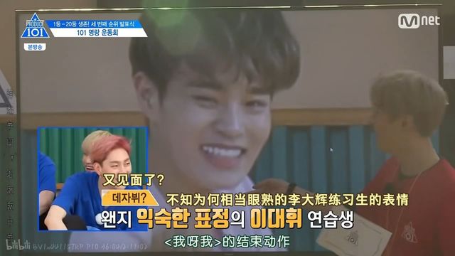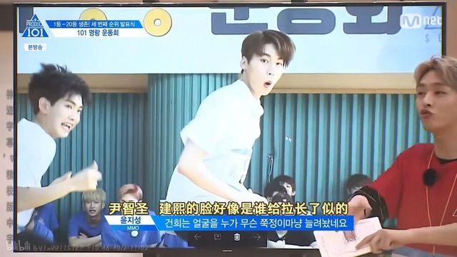 当《NEVER》组的照片被放上来时,尹智圣率先发现了亮点并伸手指了出来,“哦?大辉有点……大辉要稍微放大点。”