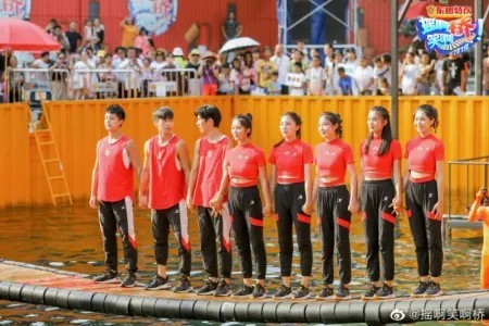 李浩菲石头剪刀布,赢的泼水,如果素人组赢了可以得到摇桥队员的注力