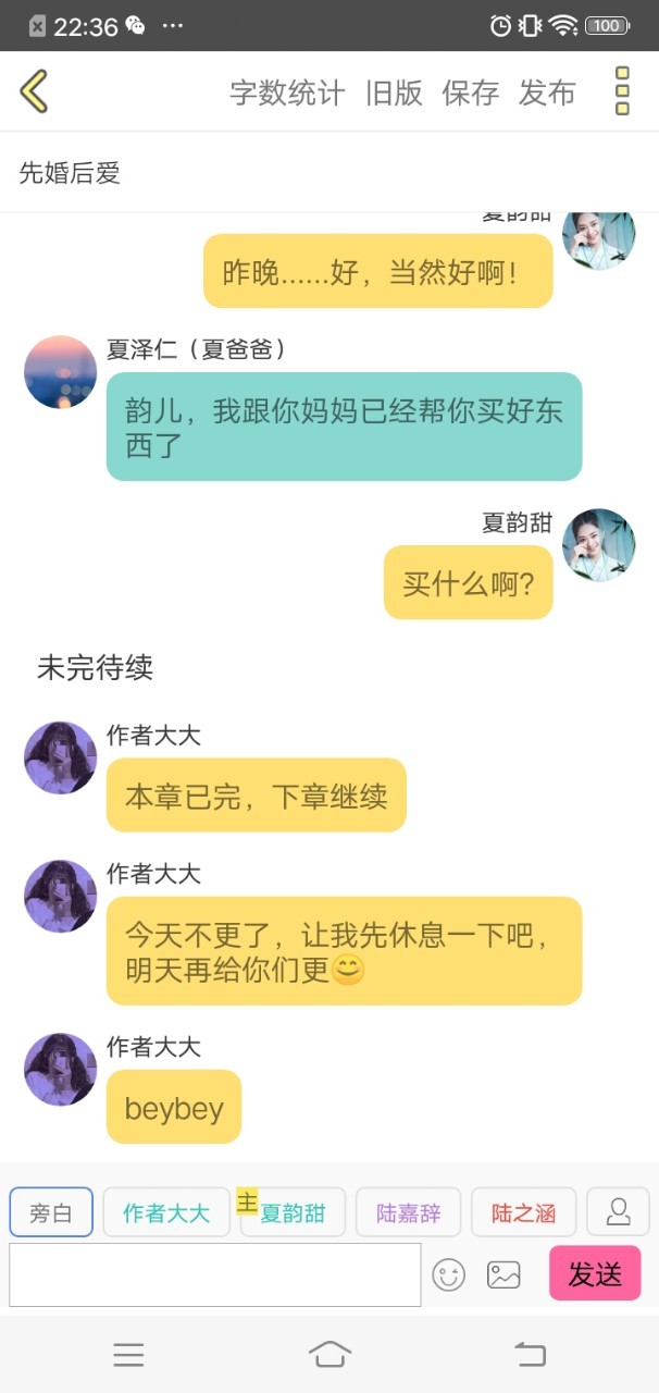 夏泽仁(夏爸爸)好了,天色也不早了韵儿,你赶紧睡觉吧