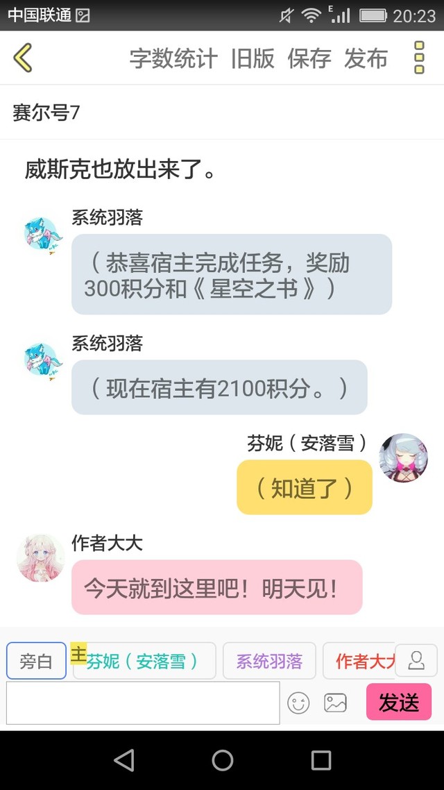 系统羽落完成奖励:1000积分和一个随身空间。