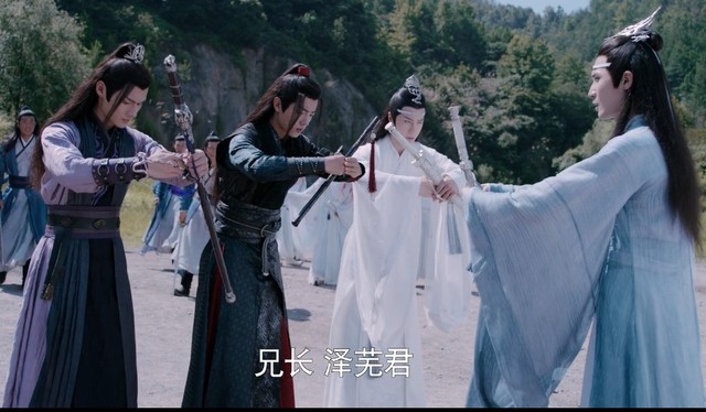 不夜天城外,魏无羡、江澄、蓝忘机带领各家名门修士一路向前赶去。行至旷碎石山道时迎面遇到了蓝曦臣。众人互相行礼。