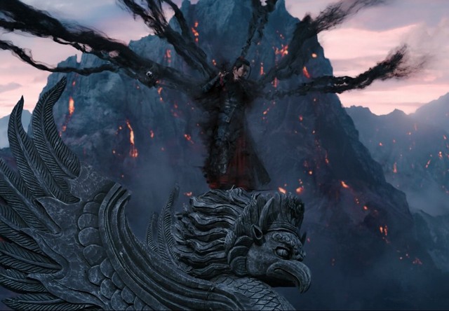 魏无羡见此状况,皱了皱眉,跃上温氏门前的石像之上,看着下面的战况,毫不犹豫的举起陈情。