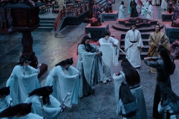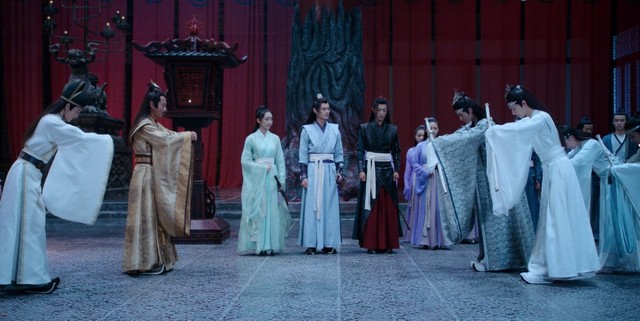 在江澄左右为难之际,魏无羡从门外走来,打断了众人的言语。旁若无人的走到金光善的面前。