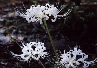 残梳曼珠沙华是一种生长在墓园,令死者都深深陶醉的死者之花.相传此花只开于忘川,红艳却惨烈,一整片似血般盛放,远远看上去就像是血所铺成的地毯,。又因其红得似火,因而被喻为"火照之路",传说见此花,即下地狱,甚为不祥