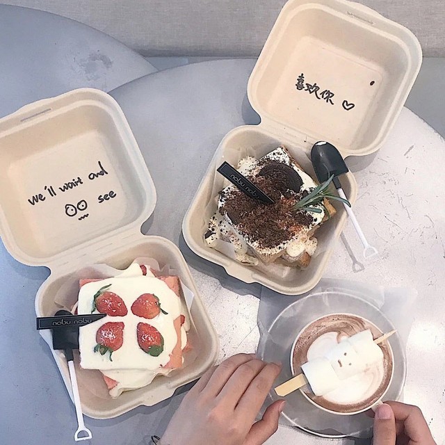 每个人都拿着一个蛋糕出来