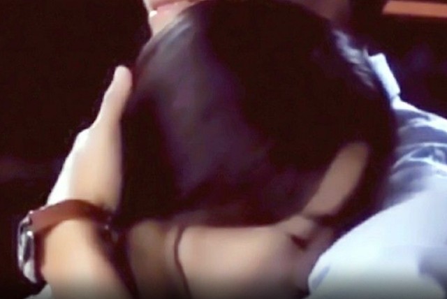 突然被抱住女孩儿挥着手想推开面前的人