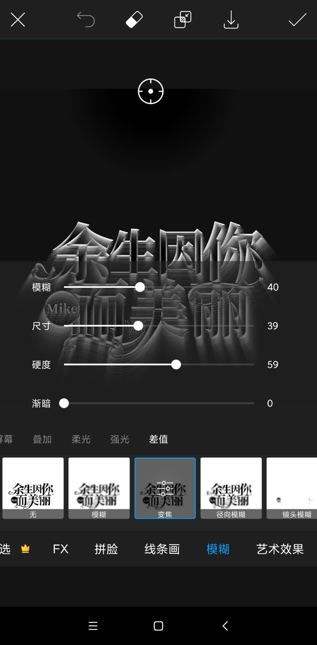 2.第二张fx特效-模糊-变焦,数值看图,也可以自己看情况调。