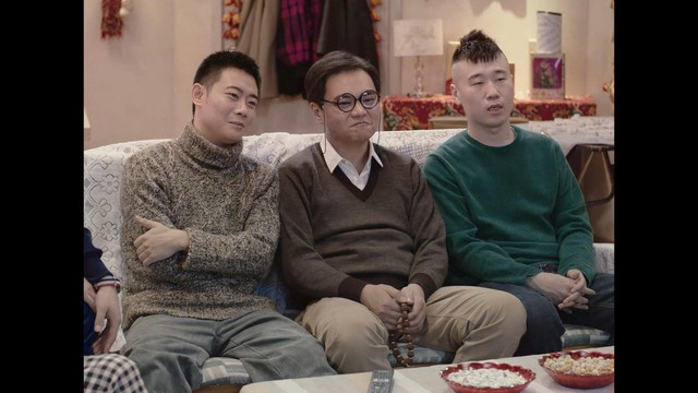 饺子包完了以后,几个人就坐在沙发上看电视了