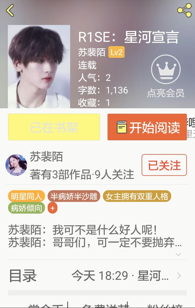 宋虞归为《R1SE:星河宣言》打赏十五枚金币,即可加两更。为《R1SE:光芒》打赏十二朵鲜花即可加一更