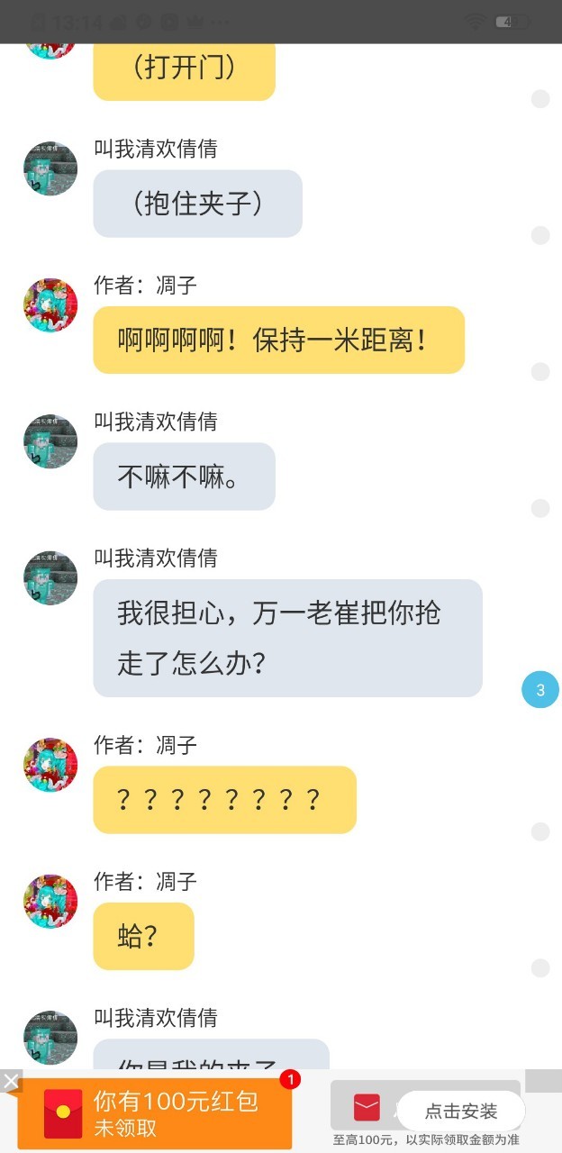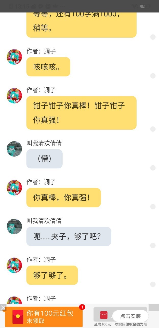 钳子总之你们就放心吧,我一定会给你们跟我之前给你们答应的,一共是一百多章,到开学前一天我会给你们数的。