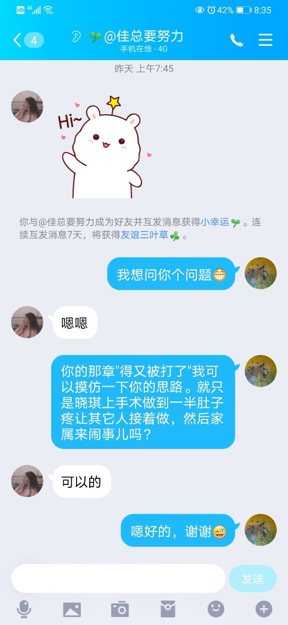 作者诗涵我很高兴有了"佳总要努力"的QQ,我在这里和她感谢一下😊😊