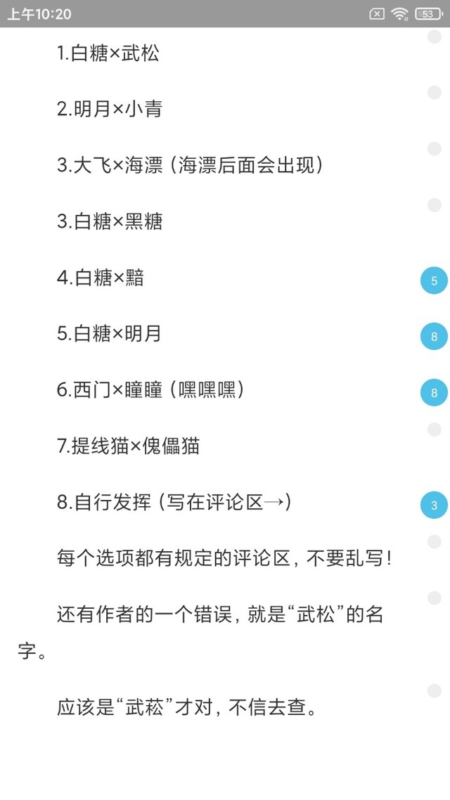 8选项是一下这些:武菘和小青,白糖和明月,西门和瞳瞳。