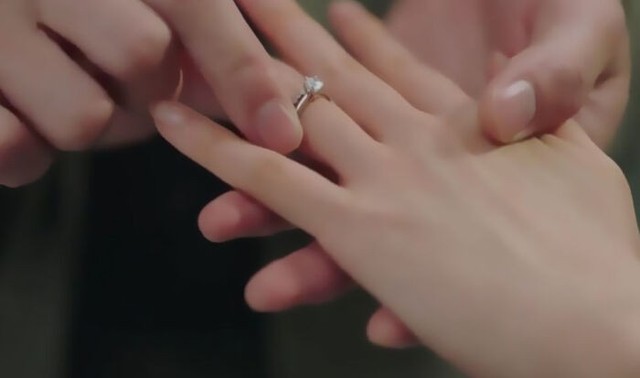 纤细的手指拖着那双将她推离危险的手,将指环套入其中,
