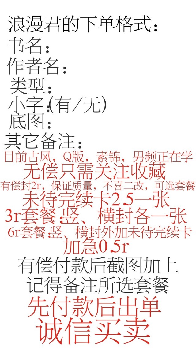 店长—浪漫君另外,无偿只支持竖封