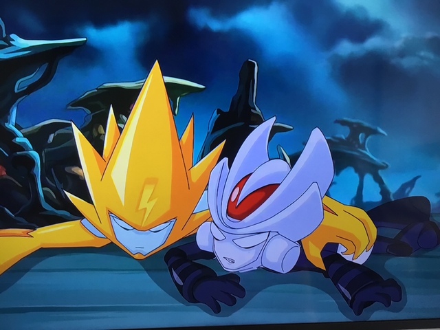 作者这张是赛尔号第3季里面雷伊盖亚对战暗夜冰狐时不慎重中计被冰冻,星能炮爆炸时,雷伊本来可以躲开,结果一个翻身扑到盖亚身上。😏