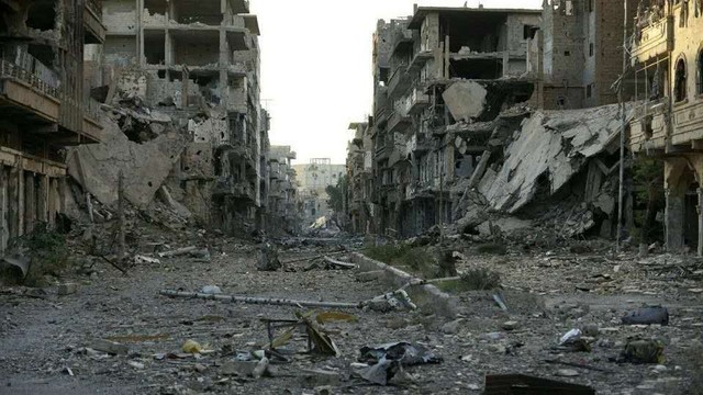 在一个荒废的场地,有两个秀气的男人站在马路中间