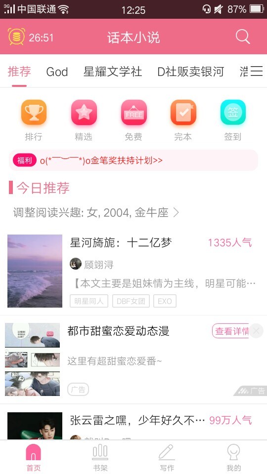 然而翊浔浔一般都晚上更,然后翊浔浔,发现居然上推荐了,说真的超开心,我都不敢想,我能上推荐!