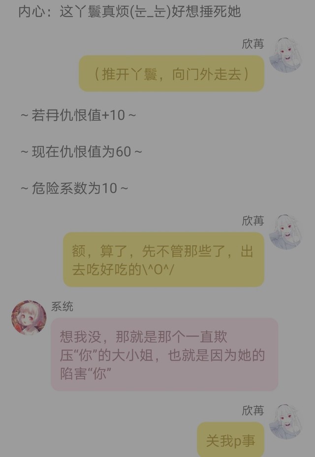欣苒内心:这个系统事真多,还天下无敌好看的小可爱,呵呵→_→我才最可爱,最好看,好不好,\(〇_o)/害,算了,为了线索我也是拼了≥﹏≤!!!!