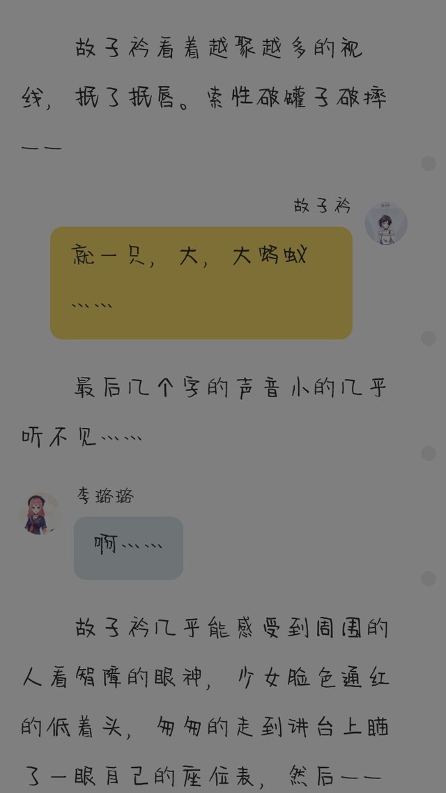 审看我觉得,应该只是让故子衿恐惧,毕竟只有故子衿见到了他刚刚的事害怕,其他人,不一定恐惧。