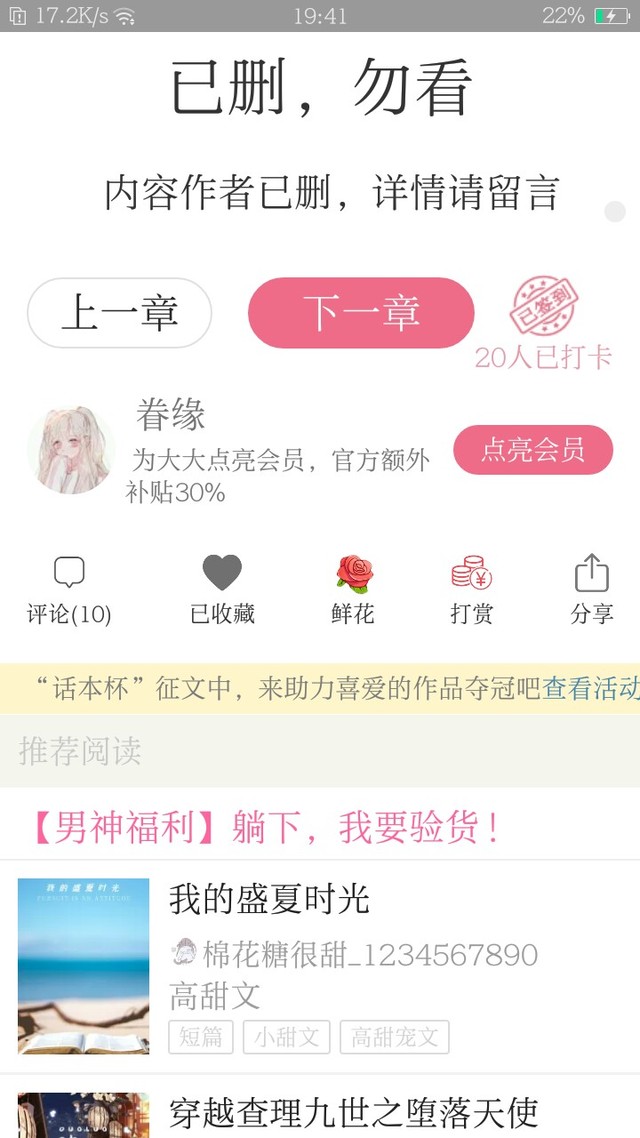 那个,章节删了在评论里说一下就好,不用专门用一个章节来说删除。