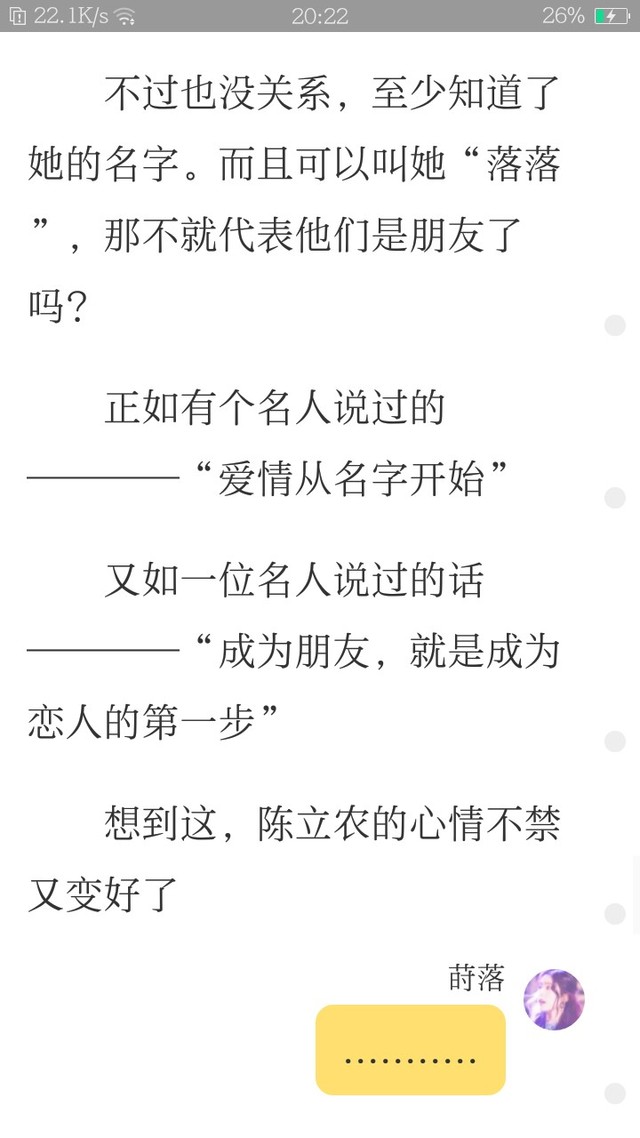 第一段的后面是人称错了吗?看后半部分,应该是女主心中所想,所以那个人的名字是不是应该换成‘自己的’?