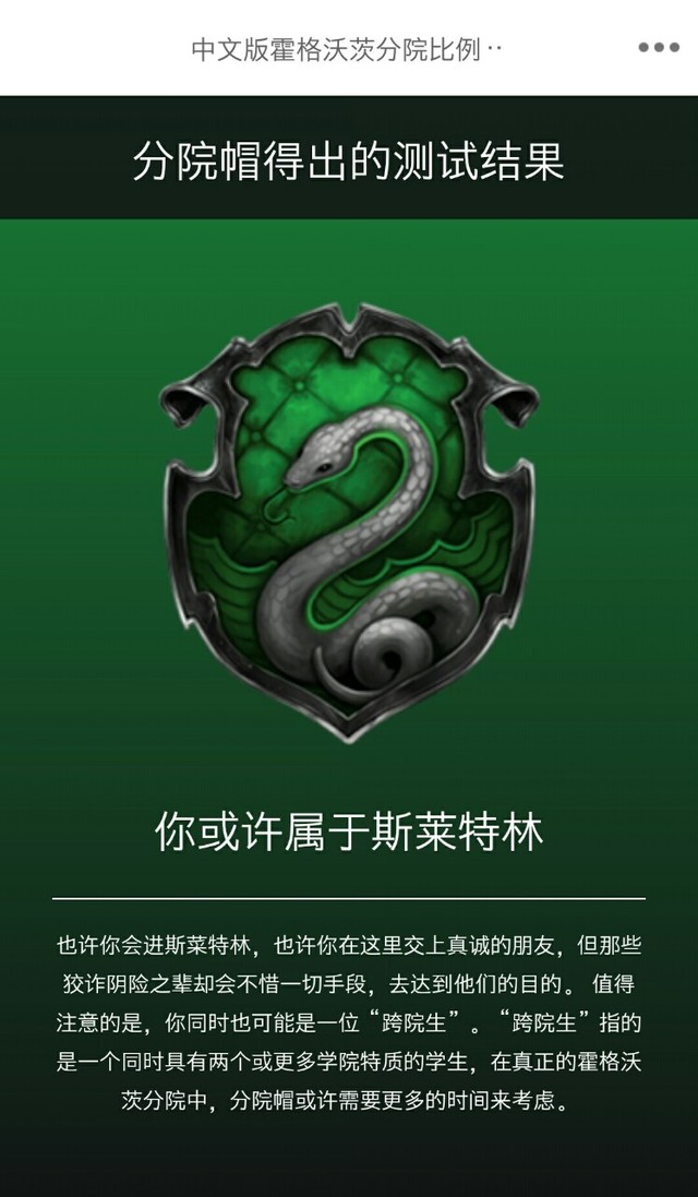 “变坏的巫师没有一个不是来自斯莱特林”
