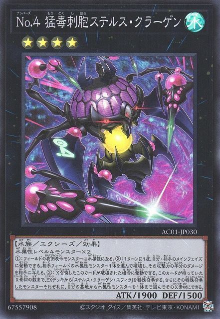 “我用等级4的死亡箱形水母以及等级4的沉默水母叠光!以两只怪兽构筑超量网,超量召唤!来吧,no.4!”