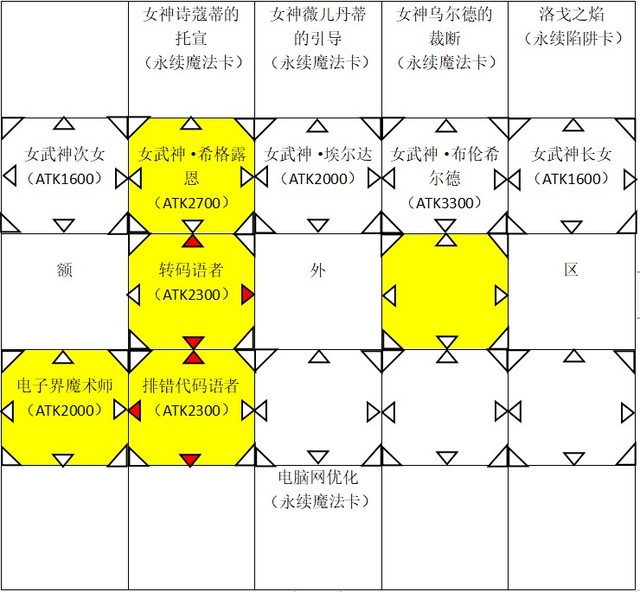 转码语者和排错代码语者的攻击力上升到了2300,在排错代码语者左连接端的电子界魔术师攻击力上升到了2000,在转码语者上连接端的女武神·希格露恩的攻击力上升到了2700。