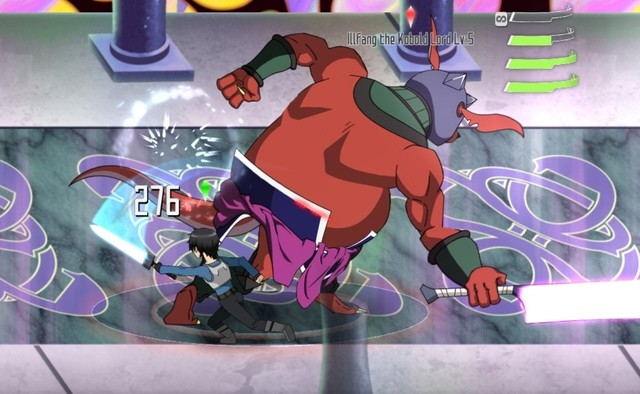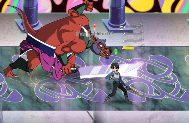 玲子使出剑技“垂直斩”,因为看起来狗头人的刀是准备用出上段攻击,可是让玲子措手不及的是,刀刃却划了个半圆转到正下方去了。