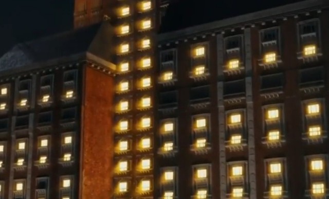 酒店的招牌灯亮起来后,小小的房子,变成了很大很大的楼房。