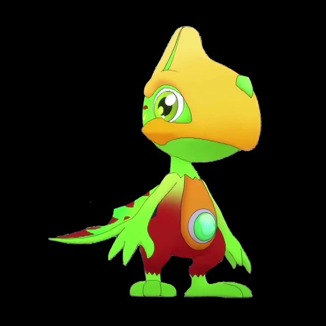披风神翼龙形态:宝贝龙 首次登场:第6集 介绍:杂食性,生存于白垩纪晚期,嘴巴没有牙齿,翅膀很长很大,有敏锐的观察力。战斗龙形态首次登场于第13集,载着蓝天画去百诺的家,但不巧被一辆车撞到退化成了宝贝龙形态。被索里救醒,与索里成了朋友,后被蓝天画得到了它的能量卡。第23集将狄古抓走,第24集与其他被关的小恐龙和卡森一起被吸入双龙核的黑洞之中。 特殊技:空气波