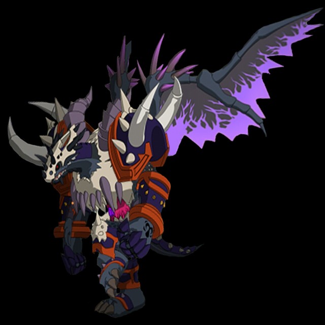 介绍:东方末为救回卡维力,通过卡森产生的黑洞逆螺旋力量加以黑暗法力(恐龙令)以及六只原始恐龙力量,弄巧成拙而诞生的邪恶恐龙,具有强大的黑暗力量,所到之处能产生世界末日的幻觉,因此东方末彻底黑化,并与恐龙令的力量融为一体,与撒旦魔龙成为黑暗邪恶的代表。撒旦魔龙自称为“本大帅”,撒旦魔龙是因为双龙核黑洞力量形成的混合巨龙
