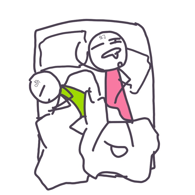 两人正保持着一种奇怪的睡姿