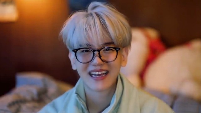 抱着自己的抱枕,边伯贤撅着小嘴一脸委屈的模样