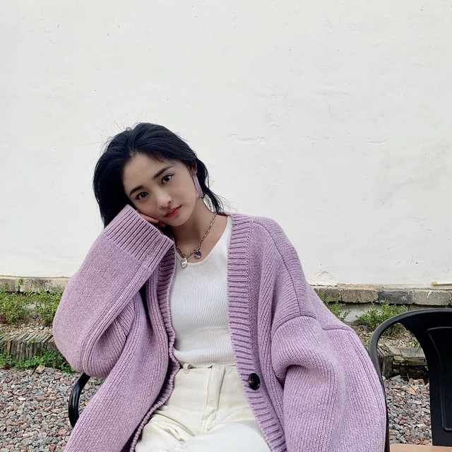 周洁琼穿着一身白裙,搭配一个紫色针织衫显得端庄大气