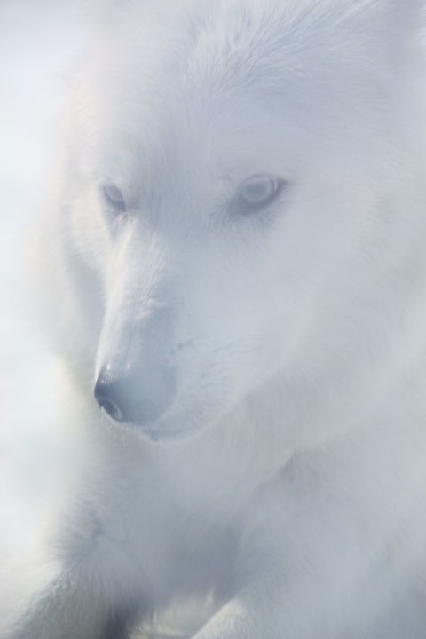 作者雪狼皮毛多为白色,身长近2米,重70公斤,有巨大的头和细而柔美的身体。全球只有剩7821只生活在人烟绝迹的中国的荒山上。雪狼是晚上觅食,一次可远行200公里。春天和夏天常常在岩石的裂缝下挖洞来生仔。