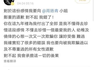 2020年4月23日12点12分,罗志祥当然也大大方方的承认了。毕竟,说不准周扬青手里还握着什么实锤