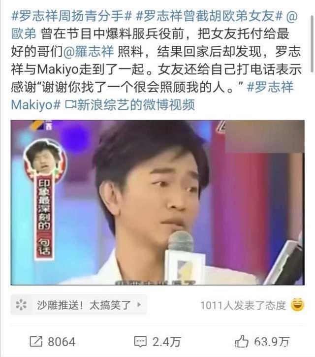 大家好吖,我是吐槽大军的冲锋陷阵者,最近那么多瓜着实把我撑的不行,万米瓜海从罗志祥说起。罗志祥最近引起了不小的轰动。大家千万不能误解我的意思,不是罗志祥一口台湾腔的歌上上啥榜了,而是,他出轨了中国内地陪伴他10年的周扬青