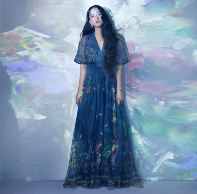 蔡智秀长裙和蓬松的头发