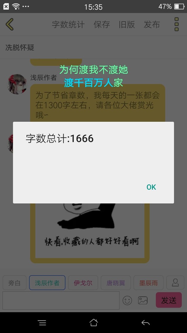 浅辰作者为了节省章数,我每天的一张都会在1300字左右,请各位大佬赏光哦∽