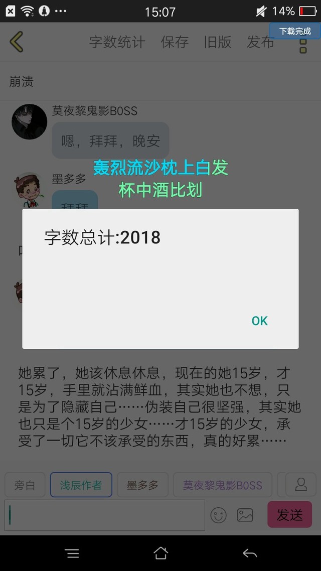 浅辰作者好,这章完成了