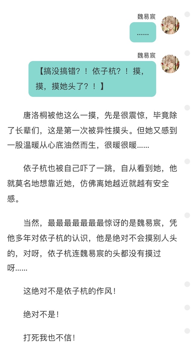 而此时的魏易宸目光呆滞,不在状态,他用手轻轻推开依子杭