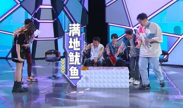 结果看到吴昕拿着尤克里里略带凶狠的走过来,王俊凯一边笑一边又把鱿鱼扔出去了,而谢霆锋更是抓着一把鱿鱼戳在尤克里里上面。